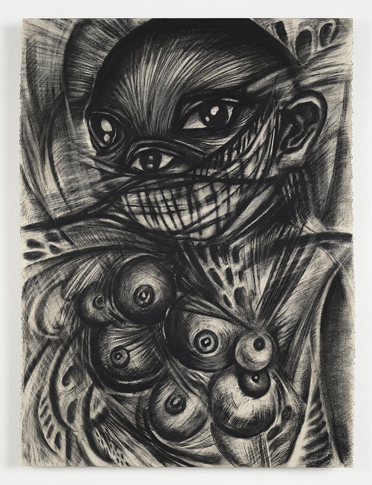 Studies for the Baubo series, 2018. Charcoal on paper, 76 x 56 cm -